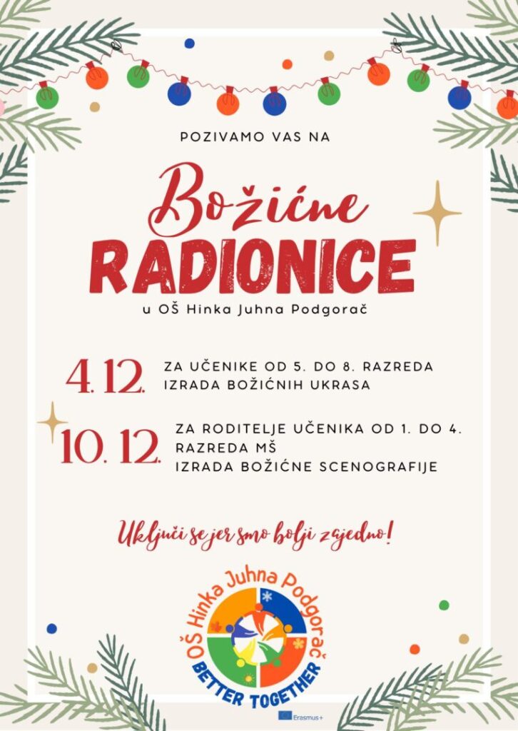 Prosinac je počeo, prva adventska svijeća je zapaljena pa nam slijedi uređenje škole i pripreme za Božićnu akademiju. Učiteljice Jelena Baričević Momčilović i Tajana Tomoković održat će radionicu izrade božićnih ukrasa od papira s učenicima velike smjene, a učiteljica Milica Ivančić će s roditeljima i učiteljicama razredne nastave izraditi scenografiju za Božićnu akademiju.