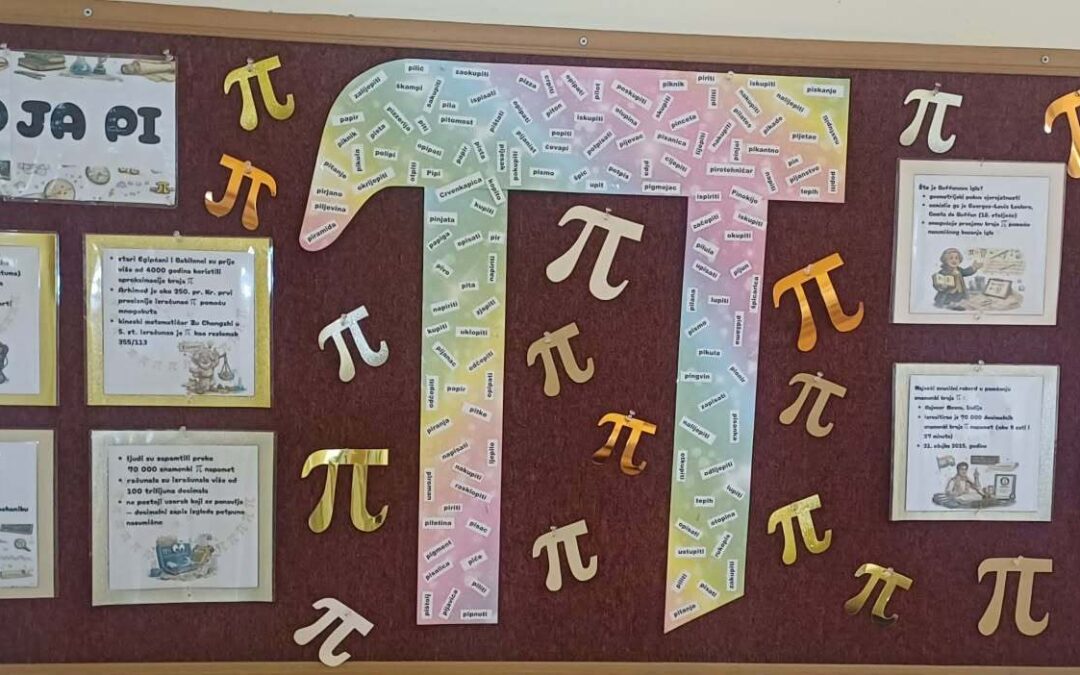 Povodom obilježavanja Dana broja π (14. ožujka), školski hol pretvoren je u mali matematički kutak znanja i zanimljivosti. Na prigodno uređenom panou učenici su mogli pročitati razne činjenice o broju π, njegovoj ulozi u matematici i svakodnevnom životu, kao i zanimljive podatke koji su ih dodatno potaknuli na razmišljanje.