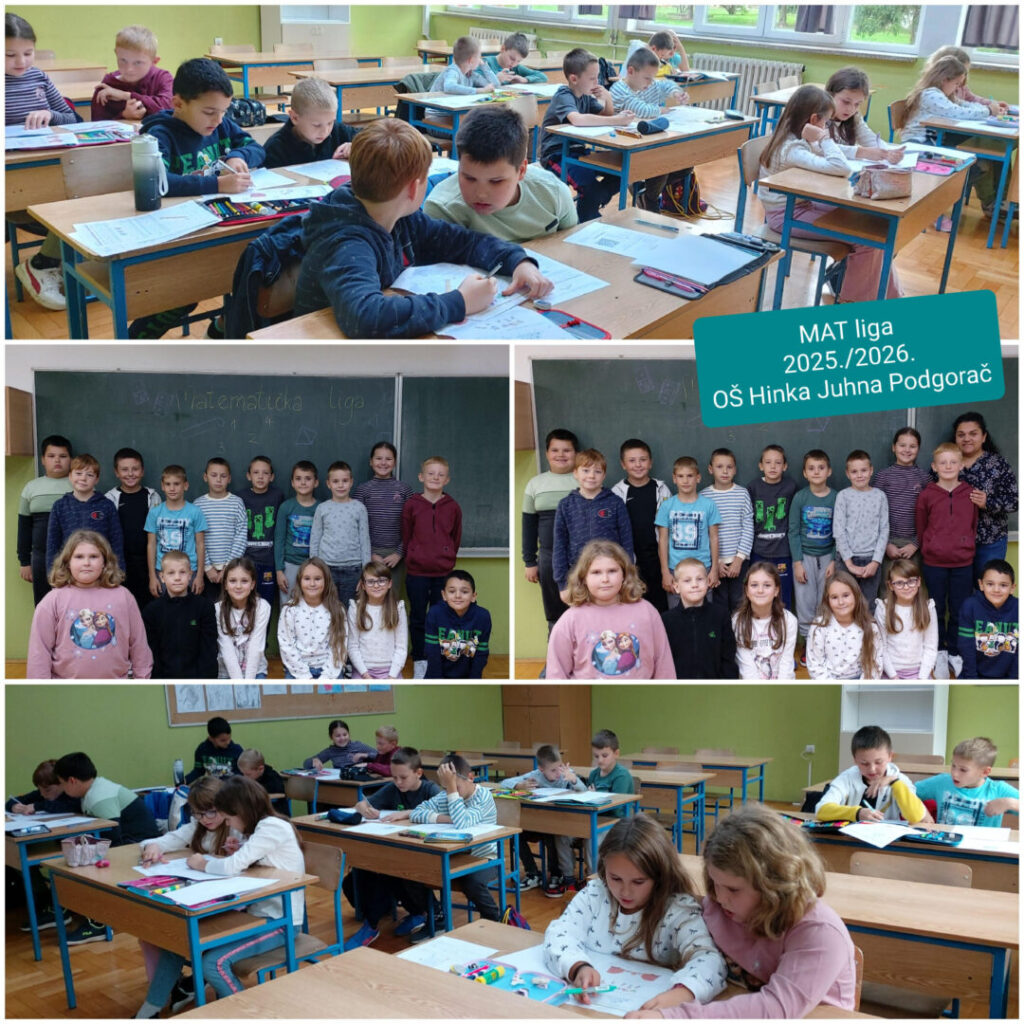 U utorak, 7. listopada 2025.g., održano je prvo kolo Mat lige u kojem su sudjelovali učenici razredne nastave OŠ Hinka Juhna Podgorač. Na natjecanju je sudjelovalo ukupno 8 parova učenika iz Matične škole Podgorač te PŠ Razbojište. Četiri su para učenika iz 2.r., tri para iz 3.r. i jedan par iz 4.r.