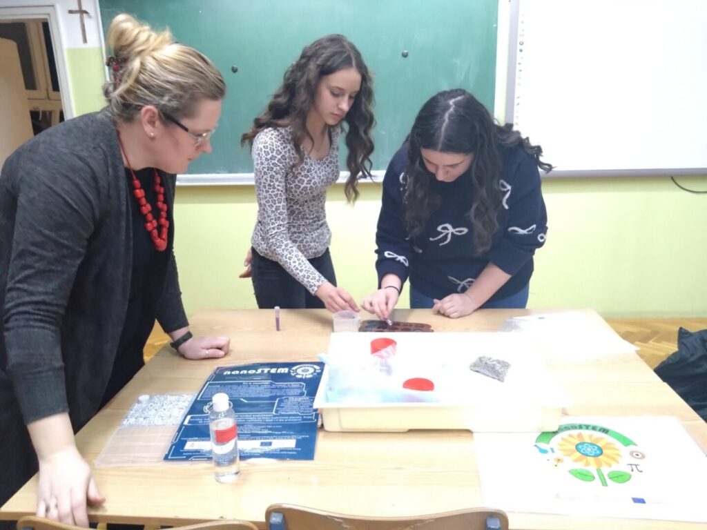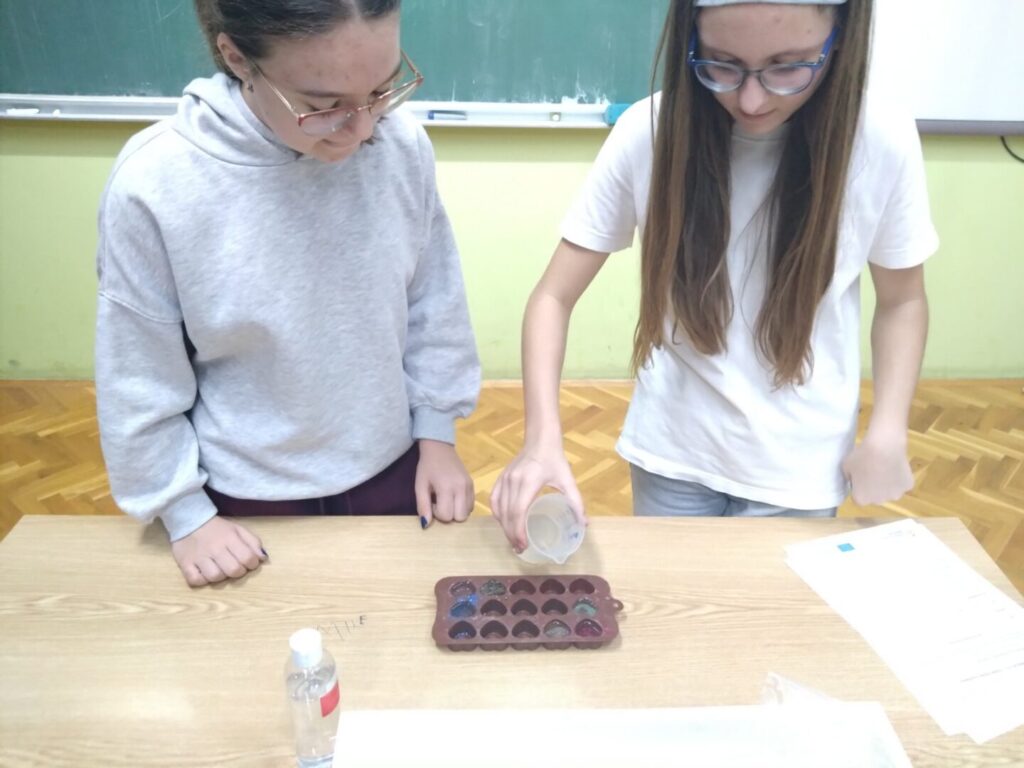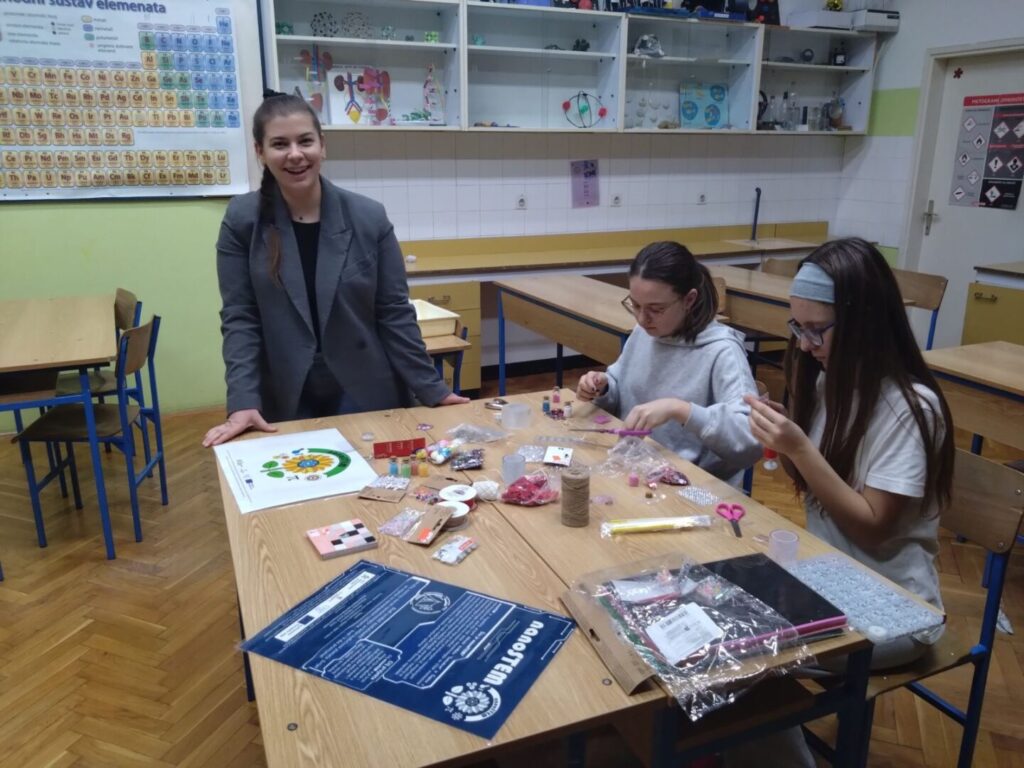Radionice u našoj školi provode Ivana Horvat, mag.chem i Kristina Marinković, učiteljica biologije i kemije. Tako je bilo i ovih dana. STEM sapunica je radionica na kojoj se izrađivao sapun za svakodnevnu upotrebu. Učenice su odabrale razne dodatke te sapunima na glicerinskoj bazi dali jedinstven izgled. Provodile su se i radionice na kojoj su se koristile nano trake. Svojstvo takvih materijala iskorišten je za izradu različitih privjesaka za ključeve, loptice te razno raznih drugih predmeta.