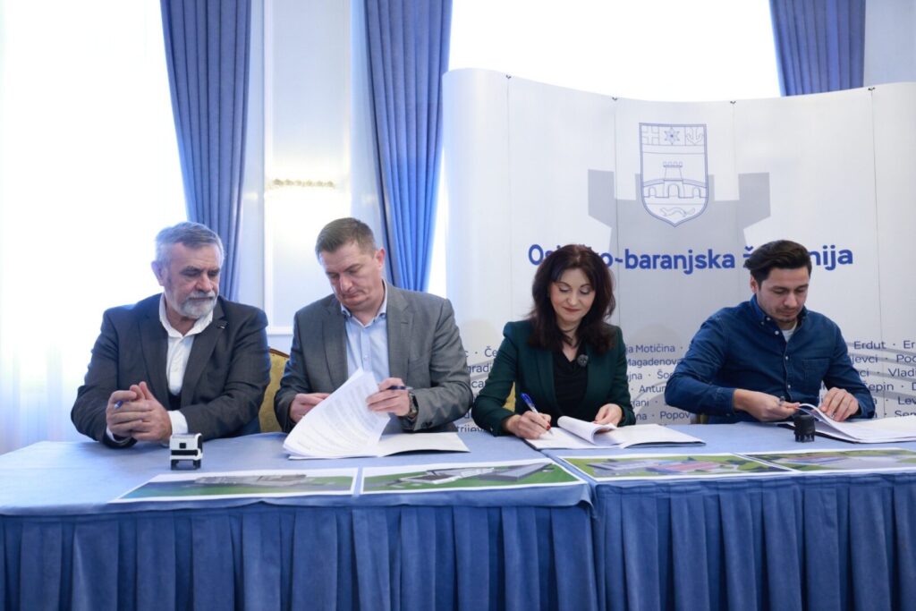 “U sjedištu Osječko-baranjske županije županica Nataša Tramišak danas (8. siječnja 2026. godine) je potpisala ugovor s izvođačima radova na rekonstrukciji i dogradnji OŠ Matije Petra Katančića Valpovo i OŠ Hinka Juhna Podgorač za potrebe jednosmjenske nastave. Time je napravljen važan korak prema stvaranju kvalitetnijih uvjeta za rad učenika i učitelja te modernizaciji školskih prostora na području županije.