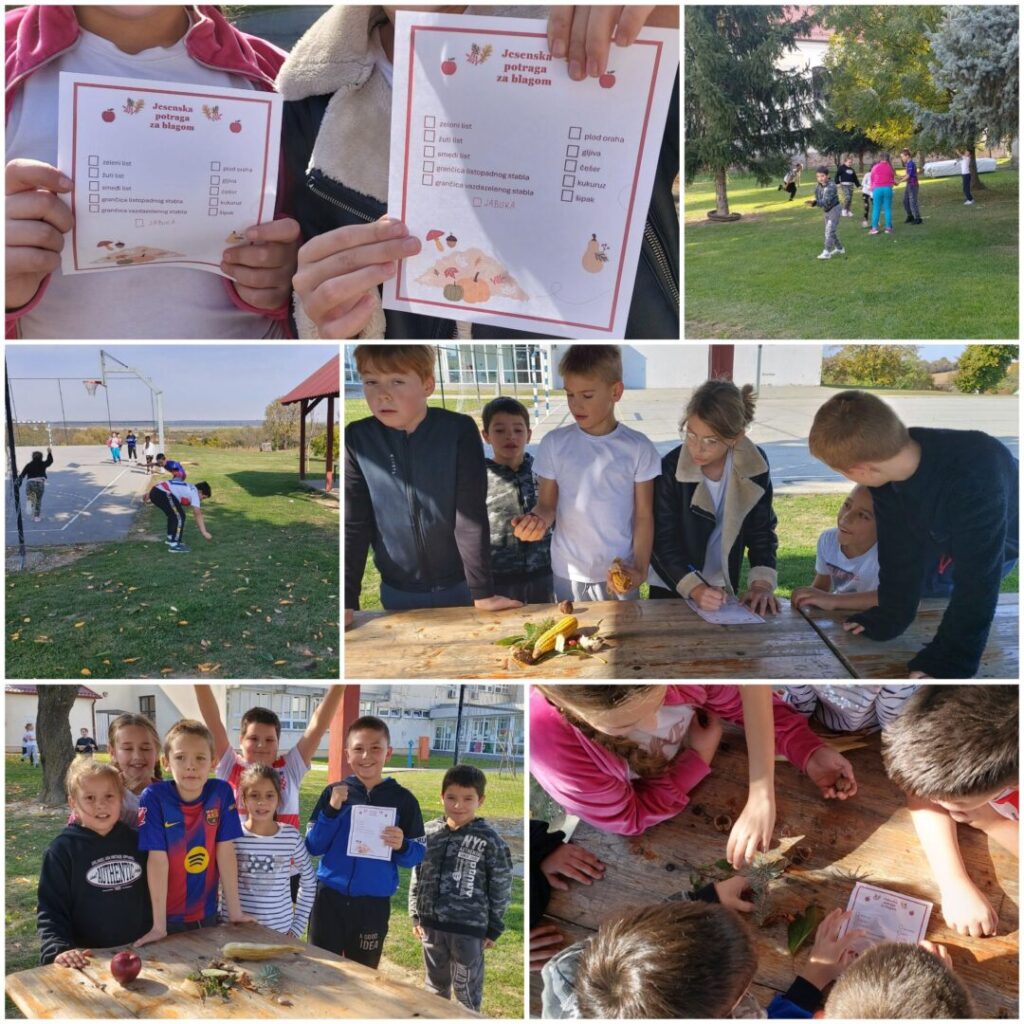 U sklopu zahvale za plodove zemlje, učenici 3.a razreda su putem umnih mapa prikazali sve što su do sada naučili o jeseni i blagodatima koje nam pruža. Nakon prezentacije umnih mapa u školskom su dvorištu promatrali promjene u prirodi. Na kraju su u dva tima odigrali jesenski lov na blago. Cilj igre bio je što prije prikupiti jesenske plodove s popisa. Učenici su se dobro organizirali unutar tima i podijelili zadatke te su svi uspješno završili potragu za jesenskim blagom.