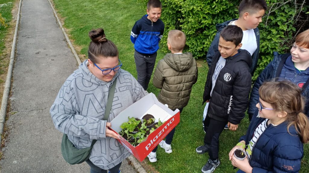 A što je s vinkama? Vinke su u toplom hodniku i odlično napreduju no njih ćemo podijeliti drugom prilikom. Prisjetimo se – svaki je učenik škole u Podgoraču posijao u čašu svoje vinke. Učenici ih redovito obilaze, prate rast i povremeno polijevaju.
