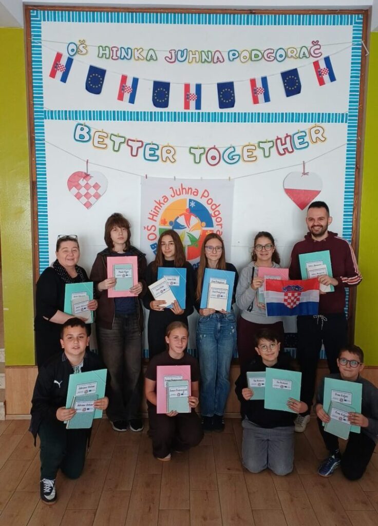 U nedjelju, 19. travnja 2026. u 6 sati ujutro na put u Poljsku su krenuli učenici naše škole na prvu ikada grupnu mobilnost učenika u sklopu Erasmus+ projekta Better Together Osnovne škole Hinka Juhna Podgorač. Učenici Lana, Ena, Tena, Paula, Ivana, Adriano, Fran i Tin u pratnji ravnateljice Zdenke Vukomanović i pedagoga Vedrana Domjanovića boravit će pet dana u Osnovnoj školi br 7 u Koninu, u Poljskoj (Szkola Podstawowa nr 7 w Koninie). Učenici će učiti s učenicima iz Poljske, sudjelovati na nastavi i u radionicama, upoznat će kulturu i običaje druge zemlje, unaprijedit će jezične vještine komunikacijom na engleskom jeziku, surađivat će i družiti se sa svojim poljskim vršnjacima. Bogat i zanimljiv program pripremili su naši učitelji i projektni partneri škole u Poljskoj s Erasmus koordinatoricom Agnieszka Parus-Włodarczyk. U četvrtak smo imali zadnji sastanak sa sudionicima mobilnosti, a danas im želimo sretan put, sretan dolazak na odredište i boravak u Poljskoj.