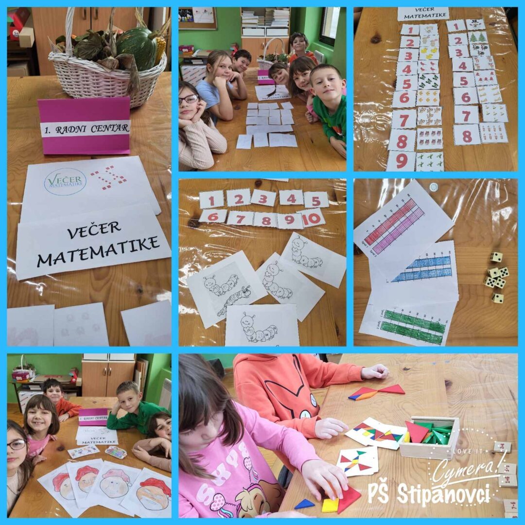 „Večer matematike tradicionalno se država početkom mjeseca prosinca. Tako su se učenici 1., 3. i 4. razreda PŠ Stipanovci priključili 4. prosinca 2025. ovom vrijednom matematičkom projektu kojim se nastoji okupiti učenike koji vole matematičke sadržaje uvježbavati kroz igru i zanimljive matematičke aktivnosti te na taj način pokazati svoje znanje. Večer matematike odradili samostalno u našem razredu te smo uživali u zanimljivim i kreativnim matematičkim radionicama, kvizovima i igricama. Ovim aktivnostima obogatili smo naše matematičko znanje i jedva čekamo nove slične aktivnosti. Veselimo se novoj Večeri matematike do nagodinu.“