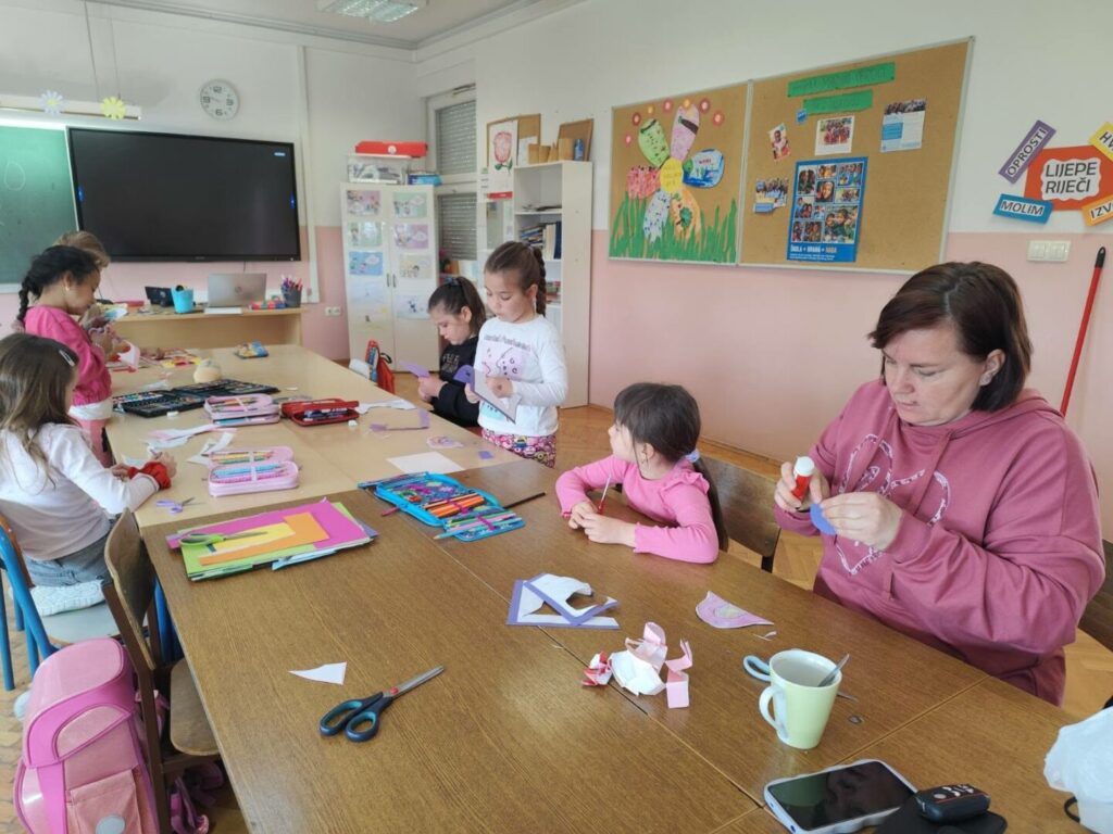 Aktivnosti su se kroz jutro ispreplitale kroz nastavne predmete: Sat razrednika, Vjeronauk, Priroda i društvo te Likovna kultura. Suradnja dviju učiteljica- Patricije Hercog i vjeroučiteljice Anite Firic rezultirala je cijelom paletom zanimljivih aktivnosti koje su unaprijed dogovorile i osmislile te predstavile jednu po jednu učenicima taj dan. U razred je učiteljica Patricija pozvala i dugogodišnju suradnicu i mještanku (majku bivšeg učiteljičinog učenika Luke) Katarinu Marošević koja je na satu Likovne kulture s učenicima provela kreativnu radionicu. U našem razredu bila je i kćer gospođe Marošević, petogodišnja djevojčica Sara koja će kroz koju godinu također postati učenica naše škole i koja je ovaj dan imala priliku upoznati se s prostorima škole, djelatnicima kao i učenicima.